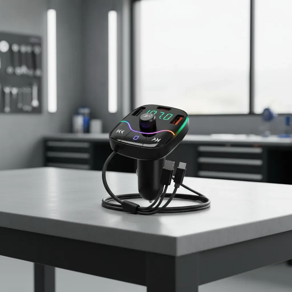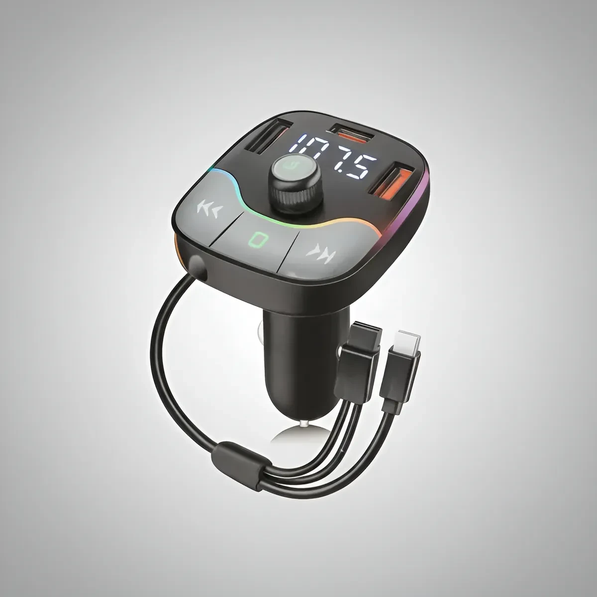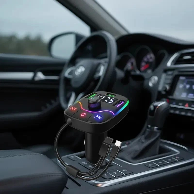 Car Bluetooth 5.0 FM Transmitter PD Type-C Dual USB 3.1A Fast Charger Colorful Ambient Light Handsfree MP3 Modulator Player