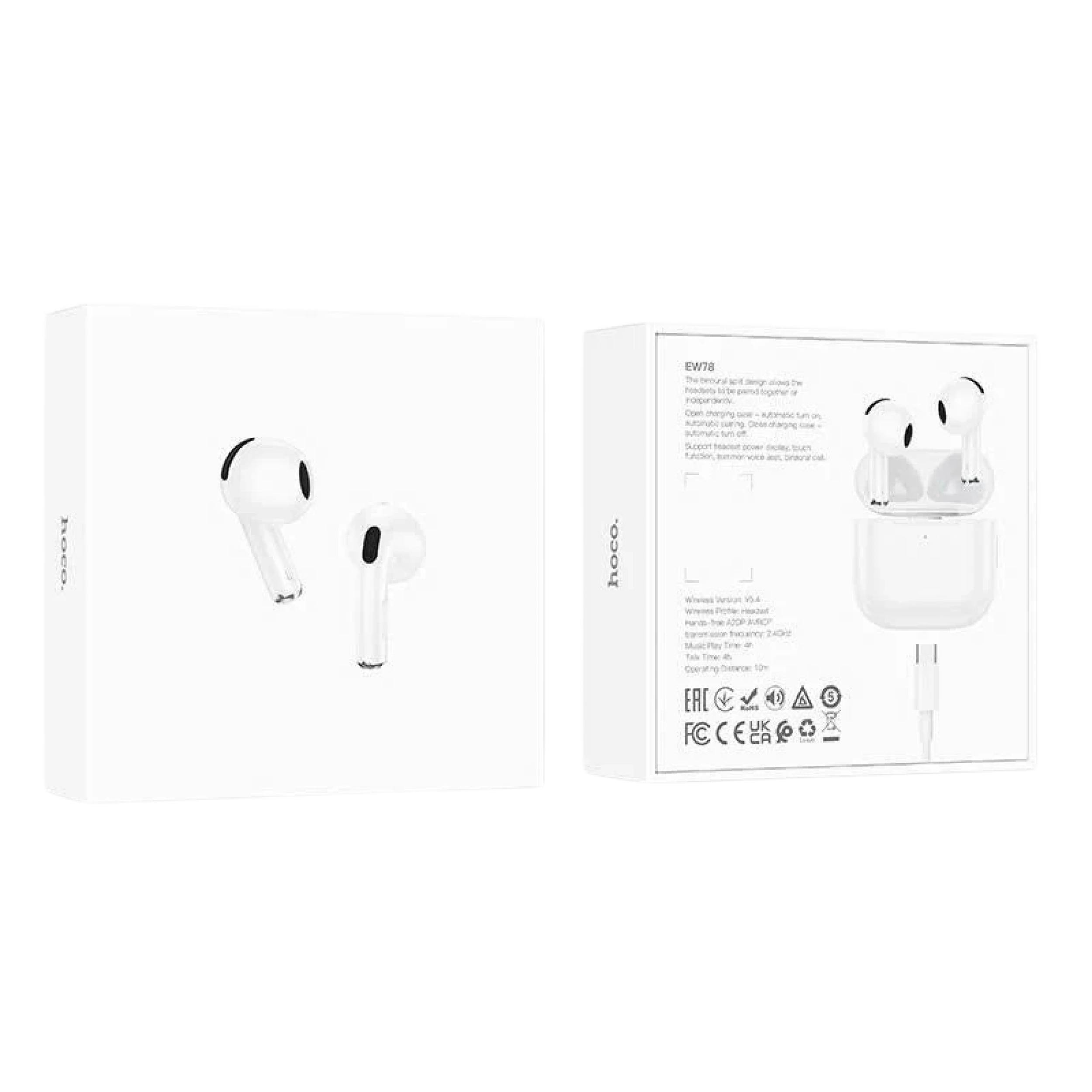 The Hoco EW78 True Wireless Stereo Headset offers stable performance, compact design, and smart touch functionality. With Bluetooth 5.4 and the JL AC6983 chip, you get seamless audio and low-latency connection. The lightweight build (only 40g total) fits comfortably in your ears, while the pressure-sensitive controls let you slide, switch tracks, adjust volume, summon Siri, and more with ease. It includes a 300mAh charging case and 30mAh earbuds, providing up to 4 hours of use per charge. Note: this model does not support button reset functionality.