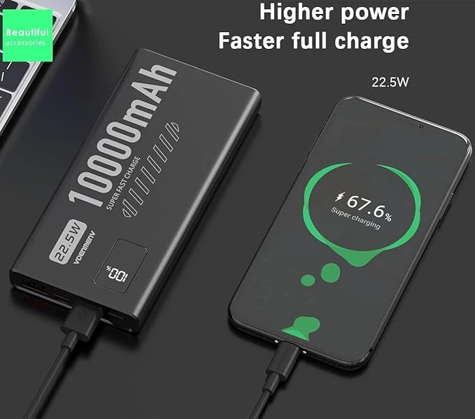 4. Powerful Capacity and Fast Charging Technology: Our power bank features a massive 10000mAh battery capacity, ensuring you won't have to worry about running out of power during long trips. It supports fast charging up to 22.5W, allowing you to quickly charge your phone, tablet, and other devices, saving precious time. Even high-capacity devices can reach optimal power levels in no time
