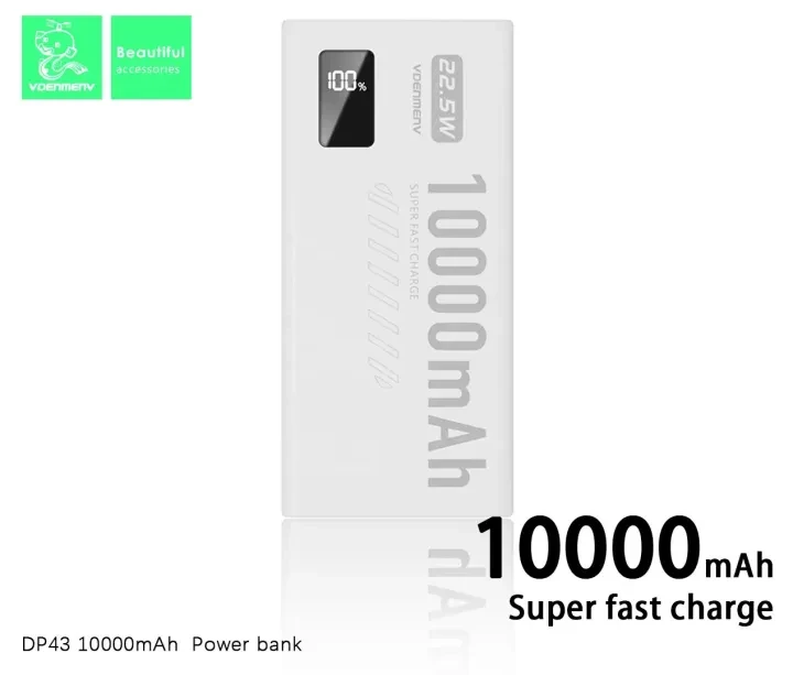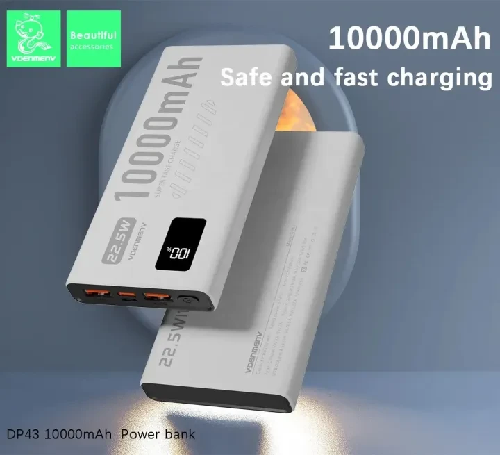 VDENMENV DP43 Fast Charging 10000mAh Power Bank with Digital Display. It supports 3.0 22.5W and